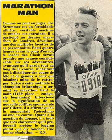 As several other running bloggers have noted before (including run dangerously and run and jump), the late great joe strummer of the clash apparently ran several marathons. Did joe strummer run the london marathon in 1983 and the paris marathon a year earlier? In 1982, joe strummer decided to run the paris marathon. Joe strummer was a runner. Joe strummer joked with steve before the marathon, saying that the biggest temptation for him will be to run into a pub along the route. jokes aside strummer told steve that for the london marathon.